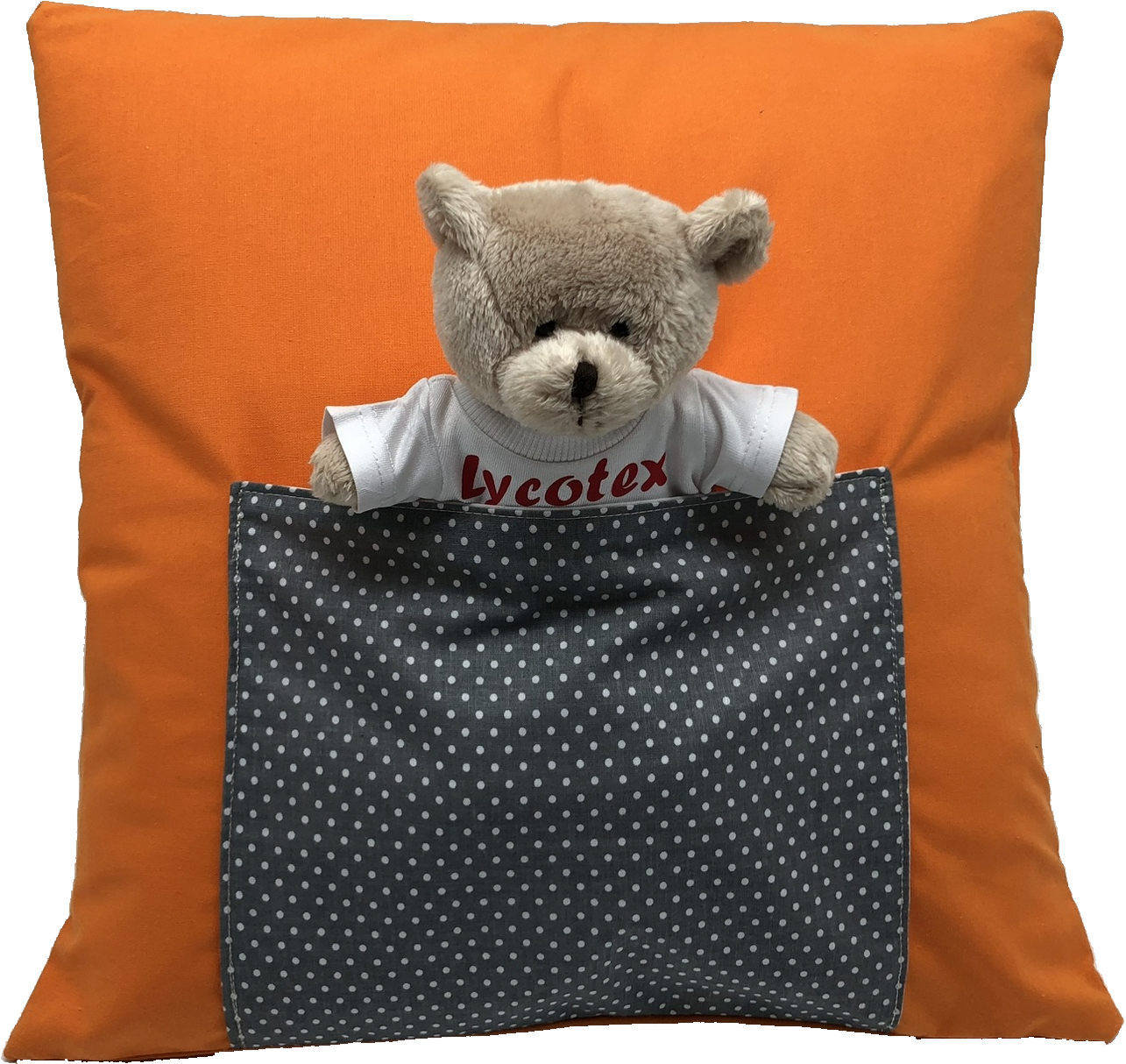 Durch die aufgenähten Tasche, lässt sich das Kissen